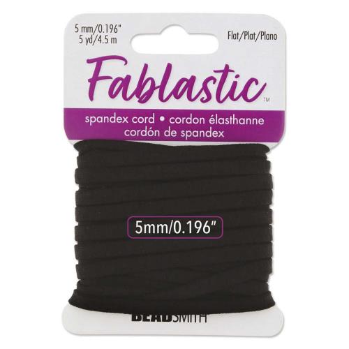Crafted with a blend of 70% Spandex and 30% polyester, the Beadsmith Round Stretch Cord - Fablastic - is the perfect elastic cord for all your crafting needs. Dimensions: 5mm Length: 5 Yards (4.572m) Colour: Black