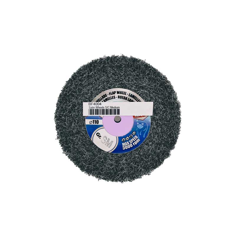 To produce a satin finish on gold, silver, pewter, and other metals. Sewn leather centre provides a firm grip. Centre: Leather diameter: 4" (100mm) Grit: Medium Ply: 3