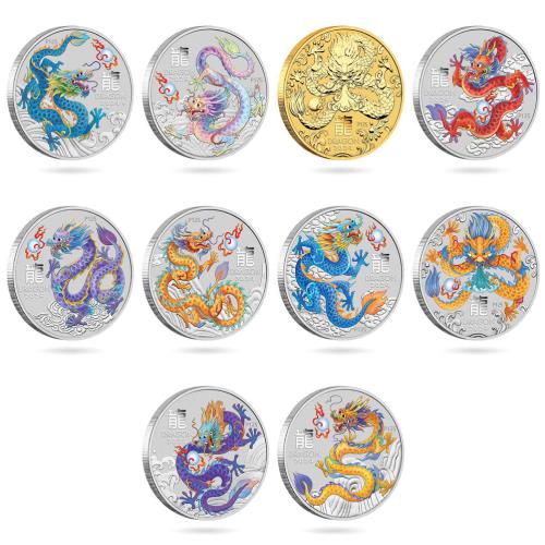 Fine Silver Coin Coloured Dragon 2024 1/2oz Set of 10