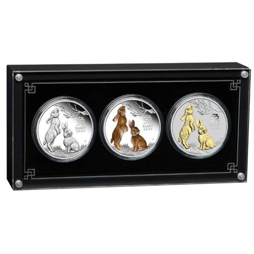 Fine Silver Coin Lunar 3 Coin Proof Set Rabbit 2023